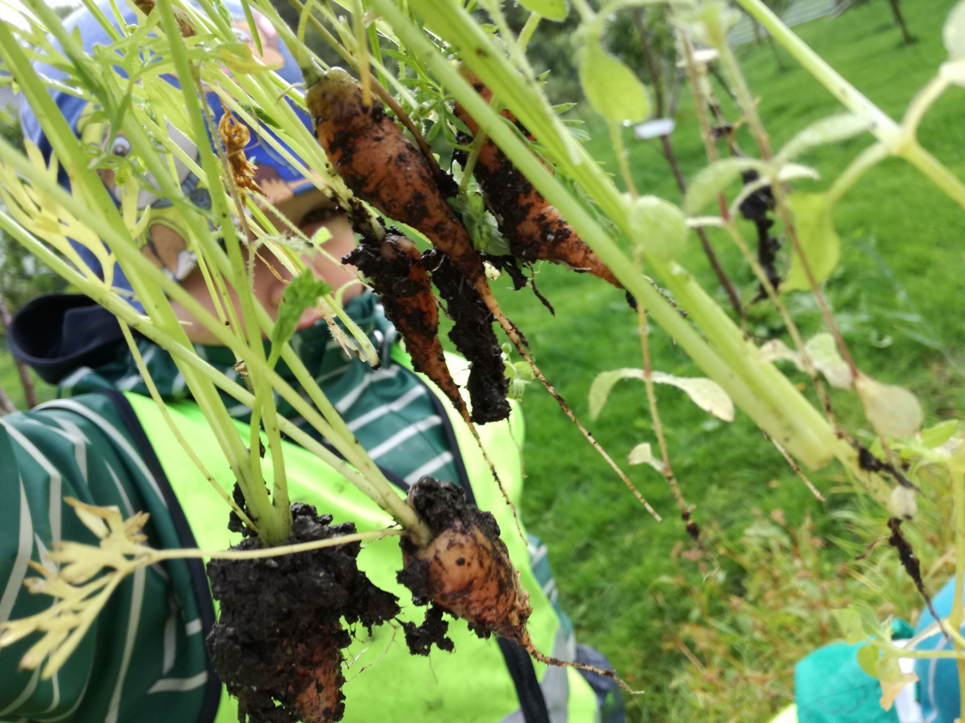 Litt senere på høsten, i september, plukket vi opp gulrøttene. De hadde hatt en i overkant sosial sommer i tillegg til en litt kort vekstsesong, men smakfulle var de små rakkarene, og gikk ned på knasende høykant.