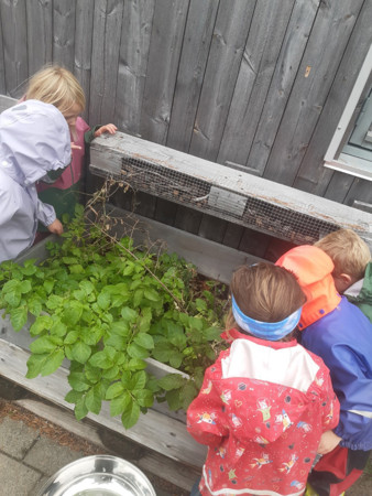 - Vi er Grønt flagg sertifisert og har med det litt ekstra fokus på natur- og miljø. Vi har egen grønnsakshage hvor vi dyrker varierte grønnsaker, og tar vare på naturen og dyrelivet rundt oss ved blant annet å vedlikeholde fuglekasser, lage humlebol, kompostere mat- og hageavfall, og rydde søppel.